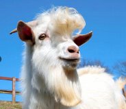 | (380) 三太・ヒツジかヤギか 資料館のオネエサンのお宝写真、ヒツジの「アマエルくん」(※1)を見て、ヤギの「かまぼこ」(※2)支持派から続々。 猫のコマルくんのおっかちゃんのおふくろさん― 「リーゼントスタイルのイケメンヤギ」 かわいいじゃないですか。 猫のウメちゃんのオカーサン― イヤ〜驚き! かまぼこ君ホントに素敵! さすがヤギ姉さんはイケメン探すのがお上手。 カッコいいリーゼントとあごひげに触ってみたいな。 ひつじが丘の雌牛さん― リーゼントヤギのかまぼこ君には驚きました! あれ、天然のリーゼント? 若葉ちゃんも一目ぼれかしら。 ヤギ生徒、みんなに見せたくなって、「かまぼこ」の写真、もう一枚もち出してきた(←写真)。 若葉、態度表明せず。 おら、<頭突きされたり、蹴倒されたりしないように>(※3)傍観。 アルフレッド、超然。 ヒツジかヤギか、ってネットでも話題になってるよ。 ※1 資料館のオネエサン秘蔵写真は「ヒツジのアマエルくん」(379) 三太・お犬様(4年ぶりの続き) |