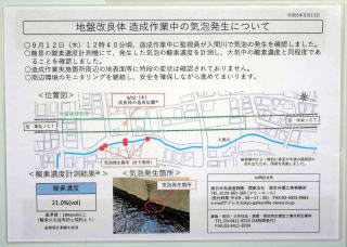 「陥没」その後―陥没から4年[参照:第936号 2024.10.4「陥没、広島市西区」●「地盤補修工事の関係者を名乗る不審者について(注意喚起)」のチラシ (2024.10.8) ●2024/10/18 (金)「気泡発生」 本日、12時過ぎくらいから、入間川の神明橋から5軒目(解体済み)のお宅の前あたりで、気泡が発生したと連絡を受けました。 3~4か所から小さな泡が連なって出ていましたが、13時35分には全て止まったということです。特に造成の噴射圧力を調整した 訳でもなく、自然に止まったそうです。 ●外環道の気泡シールド工事による酸欠空気噴出 1)2018年5月~ 世田谷区野川大正橋付近 https://tokyo-gaikan-project.com/news/detail.php?id=190 https://tokyo-gaikan-project.com/files/news/news_190_5.pdf 2)2019年9月頃 練馬区大泉JCT白子川や地面 https://tokyo-gaikan-project.com/news/detail.php?id=272 3)2020年3月~ 調布市・狛江市野川谷戸橋~ https://tokyo-gaikan-project.com/news/detail.php?id=282 4)2020年10月 陥没・空洞 陥没・空洞事故に、気泡シールド工法が深く関わっている。 「第7回東京外環トンネル施工等検討委員会有識者委員会 報告書」 ![]() https://www.e-nexco.co.jp/assets/pdf/company/info_public/other/gaikan_tunnel/7nd/event09.pdf ●「地盤補修工事」=解体現場写真 (上)赤白のポール・コーンに囲まれた地面には、家があった。 (下)白いパネルの内側にも、家があった。 ●2024/10/19 (土) (1)外環陥没から4年の報道 (2)「声明」 (1)2020.10.18の外環陥没から4年目の報道1)大深度地下は誰のものか?三島康生 https://note.com/chyofu_gaikan #16 陥没から4年(1)~三者協議の今後は https://note.com/chyofu_gaikan/n/n5a8b64b6e833 2)NHK 2024年10月18日 16時29分 東京 調布 道路陥没から4年 地盤補修工事 完了のめど立たず https://www3.nhk.or.jp/news/html/20241018/k10014612981000.html 首都圏ニュース18:30~18:34に放映されました。 ***************************************** (2)「声明」 外環ネット他13団体 2024年10月18日 「住民無視・人権蹂躙の東京外かく環状道路建設事業の中止を! 事故4周年にあたり、陥没事故の事業者の責任を改めて問う」 外環ネット (連絡先:info-gaikannet@gaikan.net) 東京外環道訴訟を支える会他12団体 調布陥没事故から既に4年が経つ今、私たちは、改めて陥没事故について事業者が責任を果たし謝罪すること、住民無視・人権蹂躙の東京外環道事業の中止を求めます。 2020年10月18日に東京外環道のトンネル工事により調布市東つつじヶ丘の住宅地に巨大陥没事故が発生。その後、巨大空洞も3つ、確認されました。1ヶ月ほど前から住民は振動・ 騒音・低周波音被害を訴えていましたが、事業者は工事を強行し陥没事故を起こしました。それから4年、被害地域修復どころかトンネル直上の地盤補修工事で街は完全に壊されています。 こんな計画がなければ、こんな事故がなければ、何事もなくただ静かに余生を送リ、あるいは子育てをしているはずだった住民たちも、「健康で文化的な生活」どころか「平穏に住み続ける生活権」を奪われ、心身の健康を蝕まれる状況が続いています。 被害地域では2022年末から緩んだ地盤補修工事のため、約50戸の移転、住宅解体・更地 化が始まり、並行して2023年8月から本格工事が開始されました。しかし2025年5月撤収予定が、住宅移転も含め、いまだ30%も進捗していません。2023年11月には入間川に 気泡が発生し、3か月工事中断。本年7月には市道、8月には再び入間川に気泡を発生させており、周辺地盤への影響は明白なのに、杜撰な酸素濃度測定をもとに工事を強行し続けています。 白い塀と防音幕、緑色の目隠しに囲まれた住宅地は、さながらコンビナートのようで、10㍍ を超すクレーンや圧縮ポンプなどが発する不気味なうなり声と振動・騒音・低周波音が伝わる工事現場に変わり果てています。この地で何十年も生活し、子どもを育て、老いた父母を見送ってきた住民たちが、喜びも悲しみも生活も断ち切られ、悲しいやり場のない思いを抱えて引越しをせざるをえない状況に追い込まれています。一方で、補修区域外の住民は,騒音・振動・低周波 音被害の中で、逃げ出すこともかなわず捨て置かれています。 2023年秋、野川沿いの遊歩道に起きた陥没を、外環事業者は管理者である狛江市に届けず、無断で補修しました。2024年春には、陥没地域の住民やマスコミらを監視・盗撮し、プライバシーを侵害していることが発覚しました。いずれも脱法的行為であるのに、まともな対応も謝罪もなく、住民に重ね重ねの我慢を強いたまま、地盤補修工事が進められているのが現実です。 2024年だけでも、トンネル工事による事故は、岐阜県瑞浪市でのリニアトンネル工事による地盤沈下と湧水枯渇被害、鹿児島県北薩トンネルでのトンネル壁面出水崩落事故、圏央道横浜環状南線桂台トンネル工事による地上での振動・騒音・低周波音健康被害、広島市西区雨水管シールドトンネル工事による道路陥没事故等と相次いでいます。 東京外環道工事においても、東名 JCT の作業員死亡事故に始まり、野川・白子川での気泡噴出事故、大泉 JCT でのシールドマシン自損