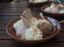 博物館。 ヤギ生徒は、カフェに直行、沈没、写真を撮る。 アイスクリームのボリューム! (→写真) これでも普通に注文した一人前か! ※1 (194) 三太ヤギミルク |