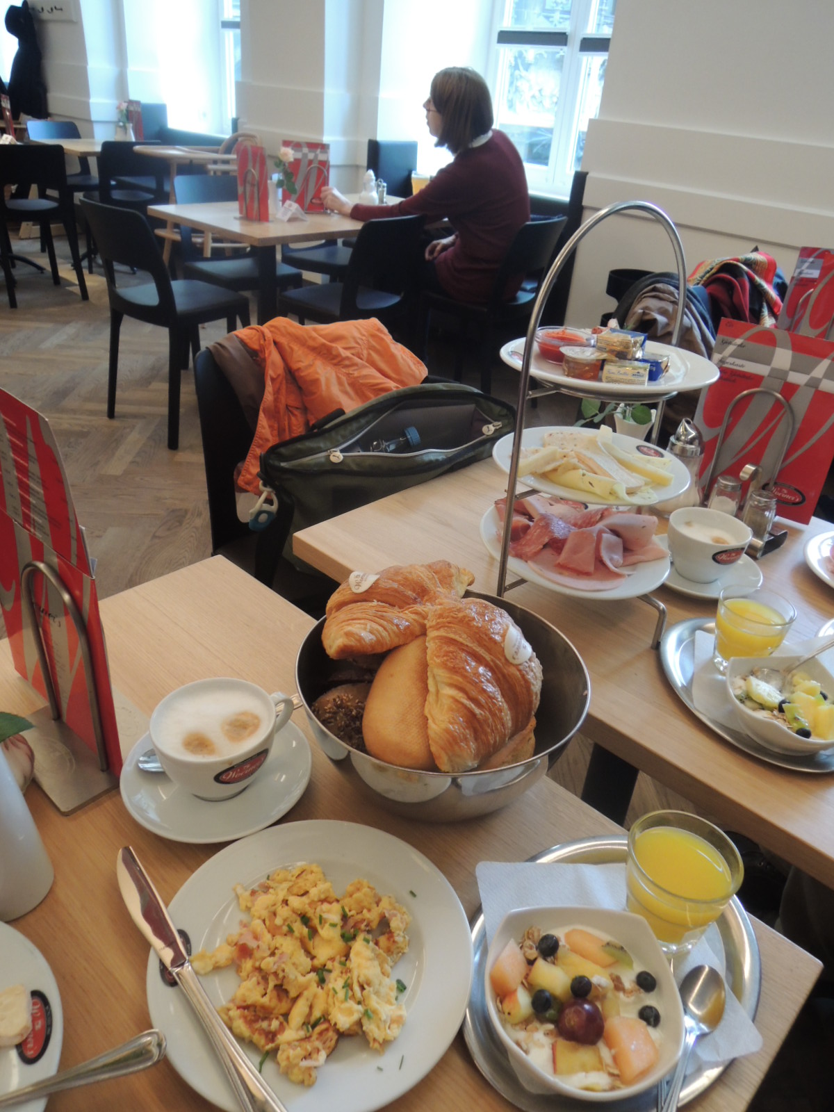 | 前々号(※1)、アイスクリームのボリュームにびっくりしたおらに、 3月に行ったドイツ旅行Aグループ(※2)から、行く先々で料理を食べ残したという「溜息」が聞こえてきた。 Aグループのヒトたちが「小食」だったのか、「モッタイナイ」系だったのか? ミュンヘン、新市庁舎の仕掛け時計を見に行く(※3)。 先生たちは、雨の中、新市庁舎前の広場にたたずむ。 ヤギ生徒、ずるけてカフェの2階、窓から眺める。 注文したモーニング、のボリュームもハンパじゃねい。