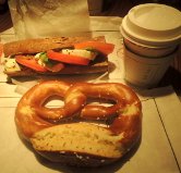 ドイツの駅にあるファーストフード店は、基本的にパンと飲み物、パン屋さんだ。 中央駅だと、パン屋さんがひしめいてる感じ。こんな感じ(写真)。 日本のコンビニだと、おにぎり・サンドイッチ・蕎麦なんかの麺類・・・っていろいろあるのに。 ドイツのヒトは、もちっ気が苦手だからパンばっかりなのか。 おら、パンは好きだ。けど、おやつに貰う程度で、パンだけで一食ってえメシはまだ経験ねい。お餅まるまる一個は、咽喉に詰まらせたら大変だから、って、おかあがくれねい。 主なる食事は雑炊だ、「つなぎ」に米粒がチラホラ入れてある。 米粒がないと、ご飯を食べた気がしねい、ってヒトはドイツ行った時、どうしたんだろ? ※1 絵本『どうながのプレッツエル』(マーグレット・レイぶん、H.A.レイえ、わたなべしげお 訳、福音館書店、1998.原作は1944) |
