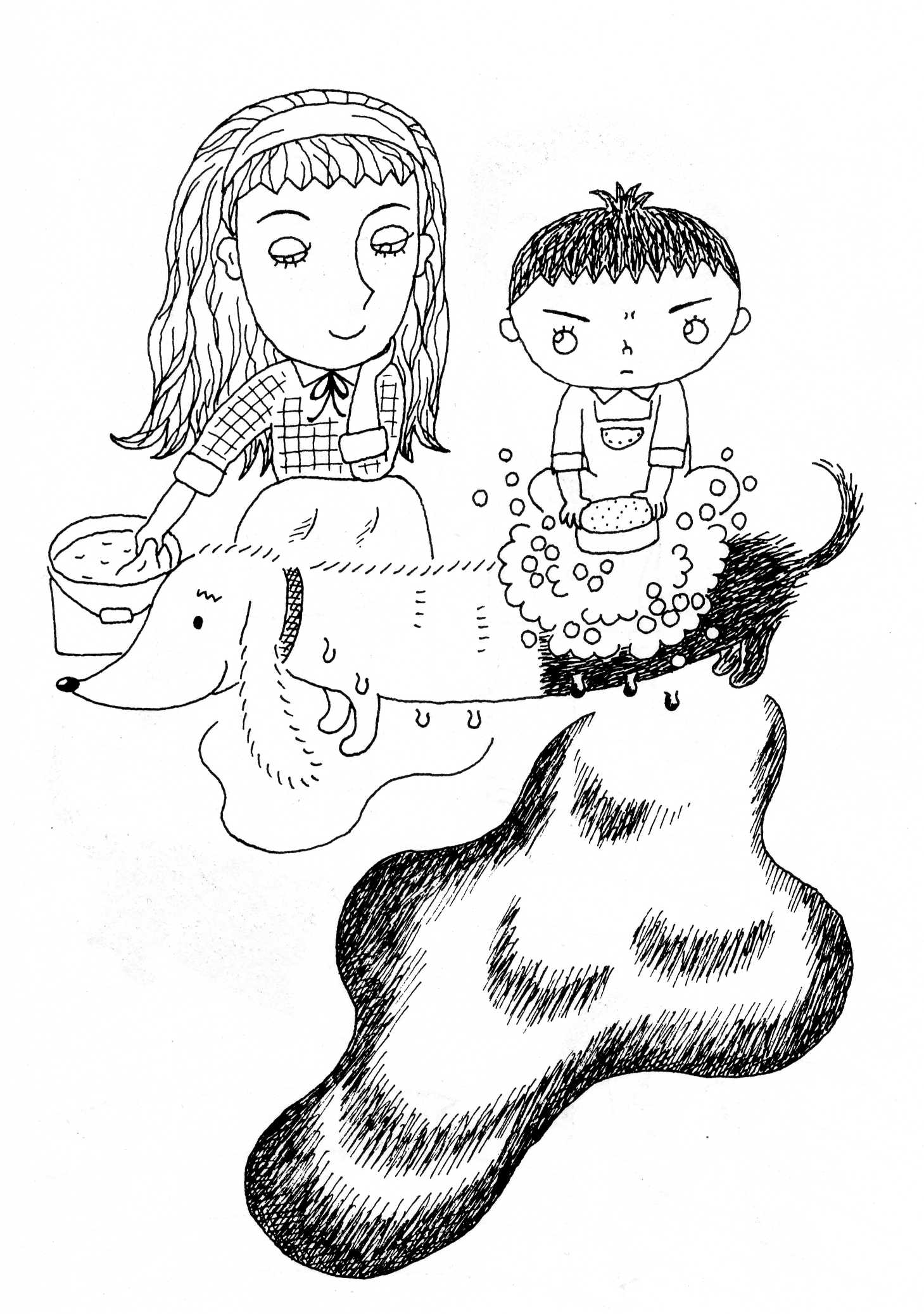 | アメリカで、小学校3年の男の子ヘンリーくん、がり痩せの迷子犬にすり寄られた。(※1) ヘンリーくん、あばら骨が浮いてるからって、【アバラー】って名前つけて、「自分の犬」にした。 乏しい小遣いから、アバラーに鑑札を受ける費用、首輪、皿、そして週一度馬肉1?を買う。 今日は、買い物が多い。ヘンリーくん、アバラーさんに、馬肉の包みをくわえさせた。 うちの冷蔵庫まで運ぶ、お手伝いには違いねいが、アバラーさん自身のための仕事だ、それでも「お使い」って言うのかな。 1分後、アバラーさんは、自分のお腹に納めた。【合理化】 イギリスで―