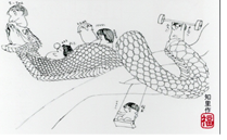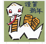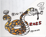 | アルフレッド― 女将さん、今年は巳年だそうですね、詳しくは、「乙巳」と書いて「きのと・み」。 「乙巳の変」は「いつしのへん」と読むそうです。(※1) 西暦645年にあたる「乙巳」の年、日本列島では20歳のテロリストが時の権力者を暗殺した…ややこしくて、僕にはわかりません。 2025年の前の「乙巳」は、1965年、1905年…日韓関係の節目だったそうです。 今年は良い節目であってほしいですね。 で、年賀状の机上展覧会の準備状況は? 女将― 今年はねェ… 年賀状、こちらから送るのは大混乱でしたが、たくさんいただいて嬉しかったです。 昨年末の郵便料金値上げを機に、はがきをやめたり「卒業します」も聞こえてきましたが。 ところが、図柄としては、ヘビは描きにくいのか、手描きは少なかった。 三太― 少数精鋭の展覧会だ。 まずは、昨年は過重な仕事をさせられて「ヘヴィーでした」さん、正月休みは飲みすぎなかったかな。① 子ども4人と「奮闘中」さん、毎日、てんやわんや。② 東京の東のほうから、白蛇さんが小判を背負ってきてくれた。③ 東京の真ん中の、都市農家さんは、野菜の宝船を作ってくれた。④ 東京の西、山梨県に移住したお医者さんは、零下10度、巡回してくるノラ猫に 「kennelならぬNekoneruネコ寝るをつくってやりました。」⑤ 締めは、今年も調布のデコちゃん、「まあるく良い年でありますように」⑥2001年