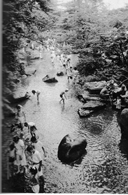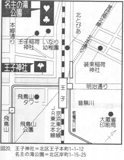 | フィールド先生― 映画「黒川の女たち」を、見てきました。 見るまでは、何か重たい気分でしたが、満蒙開拓を歴史的にしっかり位置づけ、タブーになっていた「性接待」を、なかったことにはできないと告発した女性たち。 黒川開拓団遺族会の中には、差別と偏見から守るためには隠蔽?しかないという意見がある中、現在の遺族会会長をはじめとする地域の取り組みによって、石像でしかなかった「乙女の碑」に、その歴史を刻んだ碑文が建てられた。 それによってトラウマから解放され、笑顔が戻った女性たち。 何度も涙が流れました。 見てよかったです。 アルフレッド-「黒川の女たち」は、各地で上映中です。(※1) 明日、ユーロスペースでのトークイベントのゲストは平井和子さんです。 (https://kurokawa-onnatachi.jp/) 今日は、王子界隈フィールドワークを続けます。 このコースは観光コースです(※2)が、実は戦跡めぐりでもあります。 石鍋秀子さんが描いた地図「昭和5年頃の岸町界隈」(※3、p3)だと、左下端の「秀子」という署名のあたりに石鍋商店があります。 店内の席が埋まっていたので、お店の前でご主人(石鍋秀子さんの息子さん)にお話を聞いて、葛餅を買いました。 お母さんの石鍋秀子さんによると、昭和の初めころ=95年ほど前は、飛鳥山から音無川辺、王子神社から名主の滝にかけて、たくさんの茶店があったそうです。 石鍋秀子さん(※3、p8、63)― それらの茶店で昭和のはじめ頃売られたものは、春はおでん・だんご・茹で卵・くず餅・甘酒、夏はかき氷・ラムネ・ところ天、秋はきぬかつぎ・おでん・茹で卵、一年中売っていたのは、おせんべい・飴玉など、どこでも同じようなものでした。 桜の花が咲き、飛鳥山が一ぺんににぎやかになる。飛鳥山には高い所に一年中五軒ほどの茶店があり、縁台には赤い布が敷かれ、ゆで玉子が山とつまれ、大鍋にはおでんが湯気を上げていた。くず餅や、ところ天なども売られ、我が家も急に忙しくなる。荒川土手の五色桜にも、鹿浜の虫切りにも配達する。飛鳥山にも車がないからリヤカーや自転車、また大八車で運ぶのだから大変で、父の兄弟やら従兄弟たちも来て今ならアルバイトの人たちでごった返した。 ジモティ・ミドルー 石鍋商店の葛餅が、ただただ美味しいのではなく、それが背負っていた記憶と一緒に味わえたのが大変によかったです。 女将― 急がないと! 「名主の滝」(※4)の、「金魚すくい」に間に合わない! アルフレッドー 「金魚すくい」? 縁日の、水槽の回りにみんながしゃがみ込んでる、あれですか? 水槽の中で泳いでる金魚を、紙の網「ポイ」で追い回してすくいとる? 三太― 違う違う。 「名主の滝の金魚すくい」は、名主の滝から流れて来る水面に向けて撒かれた金魚を、つかまえるんだ。 アルフレッドー 金魚を撒く? 節分の「豆撒き」とか、上棟式の「餅撒き」みたいに? お寺の放生会とか施餓鬼とかで、生きてる鳥や魚を放つ行事があるそうですが… 金魚を放流するのは、今の日本では禁止している地域もあるそうです。 女将― ずうっと前、「ドジョウ施餓鬼」に行ったことがあった、埼玉県杉戸町の永福寺(※5)。 ドジョウを放流する、ドジョウはちょうど「そうめん流し」のそうめんみたいに、樋を流れ落ちて、下の池にポッチャン。 アルフレッドー 放つのと、つかまえるのとじゃ、全く逆のようですが。 三太― 違う違う。 「名主の滝の金魚すくい」は、お寺とも民俗とも無関係な、遊園地のアトラクション。 昭和30年前後、遠くから来る家族連れにも、近所の小学生たちにも楽しみだった。 ジモティ・シニアさん、やったでしょ? ジモティ・シニアー う~ん、覚えてないなあ…学区が違うと知らなかったのかなあ… 女将― 北区のHP(※4)に、名主の滝は、「昭和20年4月の空襲により焼失し、ようやく東京都によって再公開されるようになったのは昭和35年11月でした。」とあり、 【東京湧水巡礼】(※6)の筆者さんは、北区HPにならったのか、 「戦災で全焼、敷地は1960年にようやく再公開され、1975年に北区の公園となった。小学生の夏休み、自転車に乗って水遊びに来たことが何度もあったが、公園になってちょうど数年しか経っていなかった時期だったということだ。…宿題の絵日記にも何度か描いた記憶がある。」と書いてる、「金魚すくい」のことは言及してない。 どうやら、名主の滝は、戦災に遭った1945年から1960年までの間、閉鎖されていたと思われてるらしい。 昭和10年代、名主の滝は、精養軒が経営する東京近郊の遊園地だった。食堂などの施設は地元の大人の会合の場だったし(※7)、空襲で施設が焼失した戦後も、滝と流れとプールは子どもたちの天国だった。 ということは、「金魚すくい」は、1960年に精養軒が東京都に売却するまでの、民営の遊園地のアトラクションだったということか。 やっぱり石鍋秀子さんに聞いてみよう。 秀子さんの描いた地図(※2)の真ん中には、名主の滝の、男滝からの流れが注