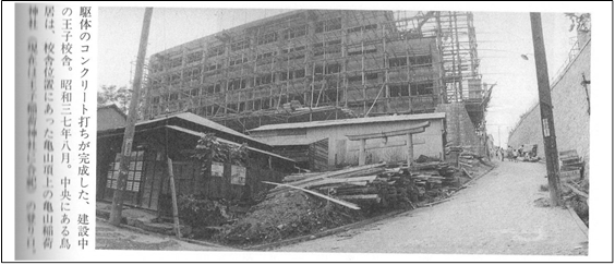 | アルフレッド ― 女将さん、「亀山」の「学校」を探して、タイムスリップしちゃいました。 女将― なんと、1877(明治10)年9月、148年前! 明治政権が新しく学校制度を敷いた、その最初期の1874(明治7)年にお寺で開校した「荒川小学校」が、1877(明治10)年 “九月更に王子村亀山の王子製紙会社外人用社宅跡に移転”してきたんですって(※1) アルフレッドー 「亀山」というのは、王子村の中の小字(こあざ)の名前だったんですね(※1-2)。 「ご-ご-ひでりん」さんが「前方後円墳なのかもしれません」と思ったように、台地の端の小さな塚だったのかもしれません。 亀山下には、王子村が「町制」を敷いて王子町になった1908(明治41)年には、王子町役場がありました。 石鍋秀子さんが描いた(※2)ように1930(昭和5)年頃には「亀山神社」あるいは「亀山稲荷神社」があり、王子稲荷の南側にあるいなり坂の途中にある鳥居から登って行ったんですね。 ずっと後ですが、この亀山を中央工学校が買収して校舎の建設を始めたときの写真(※3)の、中央右下の鳥居がそれだと思います。 ![]() 亀山には、戦争中には大きな防空壕が作られていました。(※4) おかあ- 亀山にある学校といえば、1962(昭和37)年以降、現在にいたるまで、「中央工学校」。 まだ、戦後の「焼け跡」とか「空き地」という雰囲気があり、亀山稲荷への登り口に鳥居があった亀山に、中央工学校が最初の校舎を建てたときの校長は、田中角榮(1918=大正7年生まれ)。 角榮少年は高等小学校を卒業、上京して働きながら神田にあった夜学に2年間学び1936(昭和11)年に卒業した。それが1909(明治42)年に創立された「私立中央工学校」。 建築事務所を営み成功して政界入りし、戦後1947(昭和22)年に新潟3区から衆議院議員に初当選した。敗戦後、存続が危うかった中央工学校の復興に協力し、1953(昭和28)年校長に就任した。 1974(昭和49)年4月の入学式の式辞では次のように述べている。(※5) 「自民党の中には、政治的に、外交的に、いろんなことを知ってる人はたくさんおりますが、都市計画とか都市改造とか、建築基準法の問題とかを議論したり、立法の提案を行うときには、田中がウンと言わないと、できません。 建築士法をはじめとして、河川法の一部を改正する法律も、公営住宅法、道路法、電源開発促進法、宅地建物取引業法、道路整備費の財源等に関する臨時措置法、そして原子力基本法、国土開発縦貫自動車道建設法なども、私が提案者となって成立した議員立法です。また、国土総合開発法などの法律は、私が立案などに参画し、私の構想が基盤となって制定されたものであります。」 この式辞を述べてから3か月後、内閣総理大臣に就任したので校長を辞任した。 世間は《今太閤》と大騒ぎだった。 アルフレッド- 今から10年ほど前、「今、田中角栄がブーム!」だったそうです(※6)。 女将― 私は、10年前のブームより、50年前の1974年当時の「今太閤」報道が強烈。 田中角榮著『日本列島改造論』は、ものすごいベストセラーだった。 ごく身近な「亀山」と王子界隈が、1962(昭和37)年以来、「改造」と「高度成長」の具体例だったんだ… 最初の校舎が建って以来、王子界隈は、次々に建てられる校舎が密集している住宅とモザイク状に建て混んで、学生や各種試験の受験者で、日夜ざわつく町になった。 『月刊経済』の記事(※7)が、 「コンクリートのビル校舎がタコ足配線のように各所に林立しているのがこの中央工学校なのだ。」 と書いた1987(昭和62)年に8棟だった校舎は、2010(平成22)年の『写真でみる中央工学校100年の軌跡1909-2009』では13棟となっている。 アルフレッド- 「中央工学校」の学校案内「SCHOOL GUIDE 2026」には、 「キャンパス全体が「巨大な教科書」校舎は生きた教材」とあります。 100年後にはどうなってるでしょうね。 ※1 『王子町誌 王子町編』昭和3.12 (歴史図書社 昭和54(1979) ※1-1 p93 ※1-2 p45 亀山は、王子町の大字王子の小字16の一つ。 ※2 石鍋秀子『王子に生まれて』p45「亀山神社」(前号の図) ![]() ※3「建設中の王子校舎。昭和37年8月」『中央工学校八十年史』1990年、p300 ※4 (721)80年 五大空襲 ※5『中央工学校八十年史』p362。https://chuoko.ac.jp/ ※6「今、田中角栄がブーム!人を惹きつける「今太閤」の言葉とは」 ※7 『月刊経済』34(9)(427)1987-09 p40「アングル」 「中央工学校と王子の稲荷―タコ足校舎で住宅街を破壊」 |
