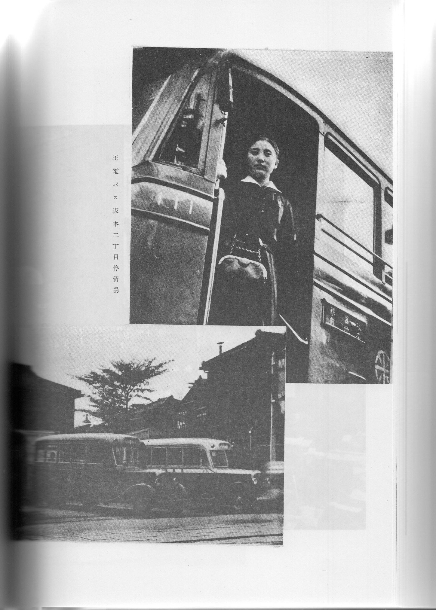 | アルフレッドー 1929年=昭和4年5月20日の王子です。 王子駅前から赤羽へのバス路線の開業日です。車はシボレー7人乗り。(※1) 女将― え? 王子電気軌道という会社は、電車だけでなくって、バスも運行していたんだ… アルフレッドー 乗合自動車事業は路線延長・拡張を重ねて、クルマは11人乗り・27人乗り・32人乗り・ 33人乗りになっていきます。 「昭和5年乃至同10年の年平均収入10万3千円が、同11年乃至14年の年平均 は42万2千円となり、マサに4倍以上の膨張である。」 乗客数も、約4倍の激増となり、 「全く時局産業拡充に伴ふ工場地帯の発展によること大である。」 女将― バスもあったということは、女性車掌がいたということかな… 『二十五年史』の「従業者員数」を見ると、「運輸乗務員」にあたるのだろうと思うけど、 大正15年上期に370人、昭和4年上期353人、とあるだけで、その職種も性別もわから ない。 前に『三十年史』の写真ページを見たときには、女性は、「印書係、電話交換係」、つま り、タイピストと電話交換手が、和服に上衣を着て働いている姿が目に残ってた。