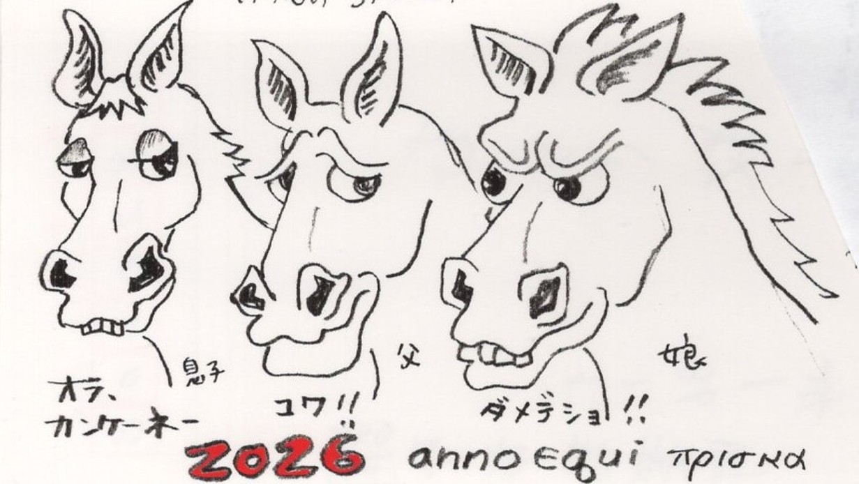 女将― そうね、メール賀状にしました、とか、卒業します、という流れのなかで、手作りの図柄は年々希少価値が高まってる感じ。 今回は、民俗的な馬たちのパレード (→パワポを開いて見てください) 写真が小さ過ぎたり、暗かったりで、紹介できない諸君、ゴメンナサイ。 調布のデコちゃん、今年も期待に応えて華やかな「木曽の花馬」を作ってくれた(※2)。 お盆の前にワラ馬が仏様を迎えに船に乗っていく、って初耳。最近では馬より速いからって、おもちゃの飛行機を乗せるとか。 中国の剪紙は、さすが、世界を駆け回って取材してきた方のコレクション。 三太― 観客席もにぎやかだ。 昨年、骨折に落ち込んだ読者さん。 24年前の本を読み返して、すごーい発見した、って興奮してるオネエサン。 「いつもの三人」の「娘」さんのイラスト、年々、ウマくなってる、っておかあ、感心しきり。 おらの散歩圏の星娘さん「ひょっこりお会いできるのを楽しみに」。 アルフレッドー で、女将さんからは? 女将― この冬、うちの庭で健闘しているモグラさんのお仕事を紹介します(※3)。 池のまわり、踏み石沿いに、一日おきくらいに、ポコッ、ポコッ、と出現するモグラ塚を計測してみたら、5個の平均重量約700グラムでした。 作者(モグラ)に会ったことがなくて、身長も体重もわからないんだけど。 三太― モグラの体重は40~180グラムだと、AIが言ってる。 うちのモグラの体重を仮に70グラムとすると、一日に4メートルくらいトンネルを掘進して、体重の10倍の土を地表に押し上げてることになる。